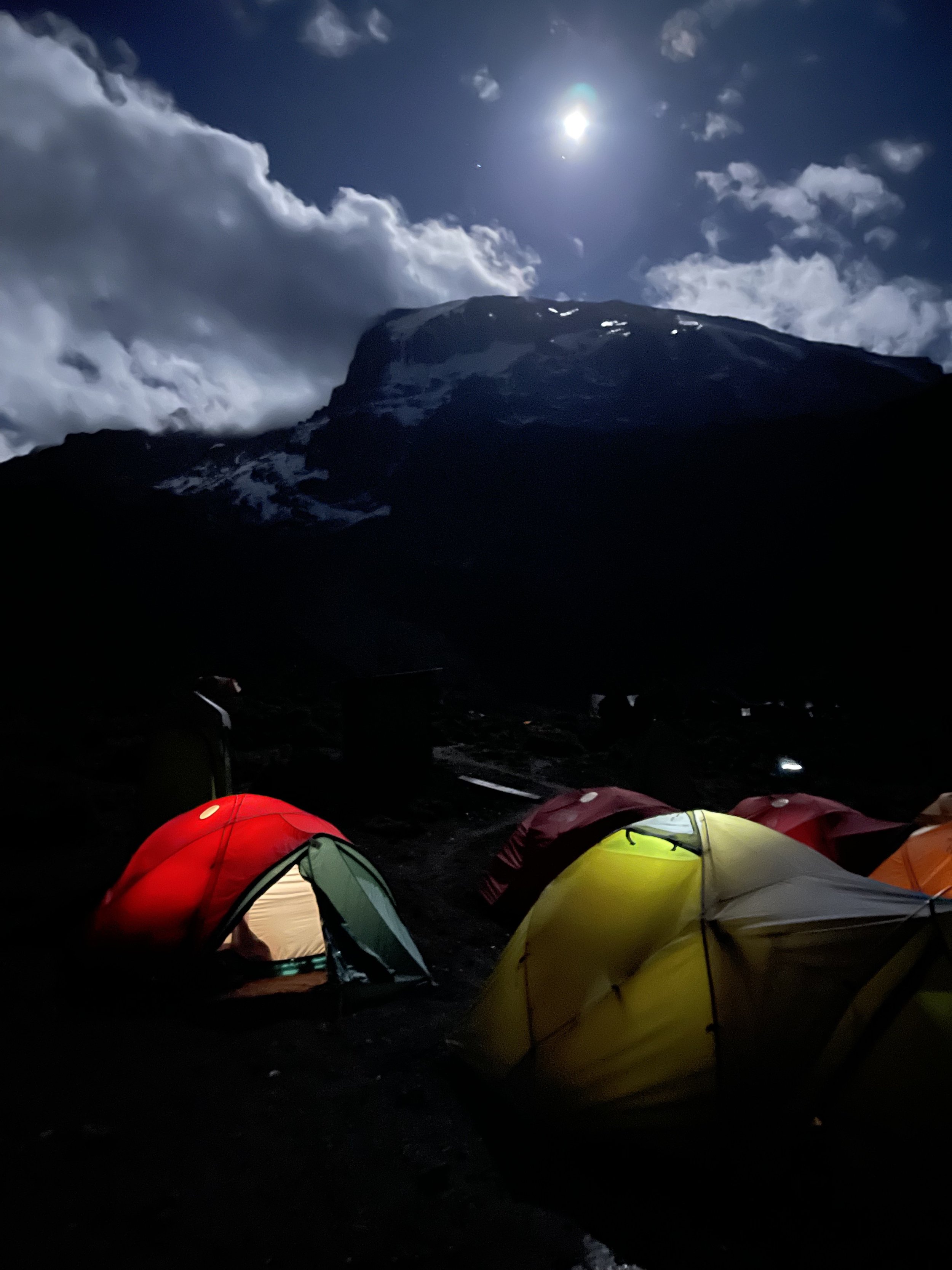 Day 6, Jan. 10th, 2025 - Moir Camp (13,800 ft, 4206 meters). Today we'll hike for about 5-6 hours across the Shira Caldera towards the Western side of the Kibo Volcanic Massif. Camping at the Moir Camp is a wonderful experience! We'll have panoramic views over the Rift Valley and into the heart of Africa. Moir Camp is located at the transition zone between the heather and Moorland, the only place we'll see the higher altitude plants like the Giant Ground Sells and Lobelia. (Breakfast, Lunch, Dinner)